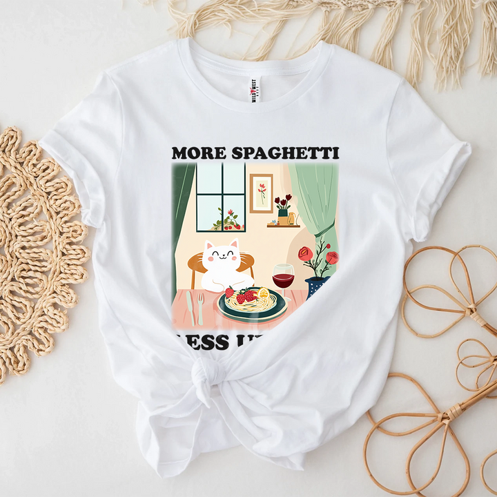 More Spaghetti, Less Upsetti – Cute Cat & Pasta Short Sleeve Tee