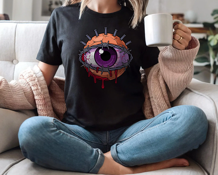 Dare to wear the "Painful Vision" tee, a chilling yet artistic design featuring a pierced, bleeding eyeball wrapped in barbed wire with deep, vivid detail. This eerie, horror-themed illustration is perfect for fans of gothic, dark aesthetics, and surreal nightmare-inspired artwork. If you love bold, edgy, and unsettling visuals, this tee will make a striking statement in your wardrobe.