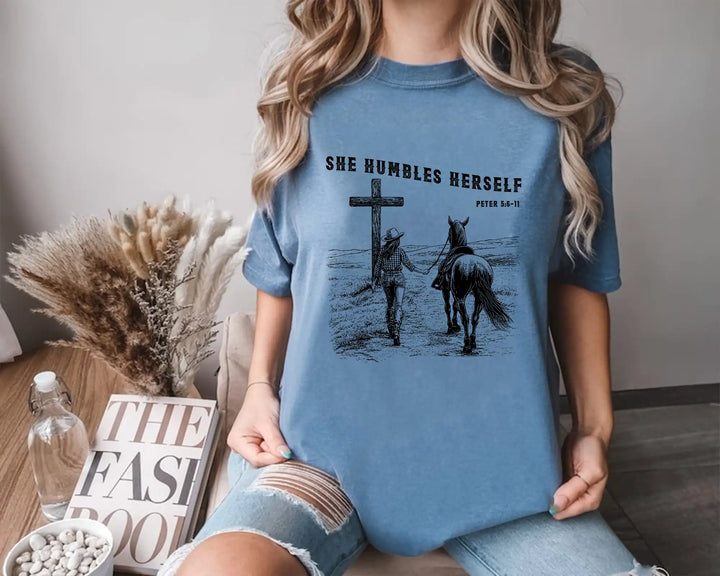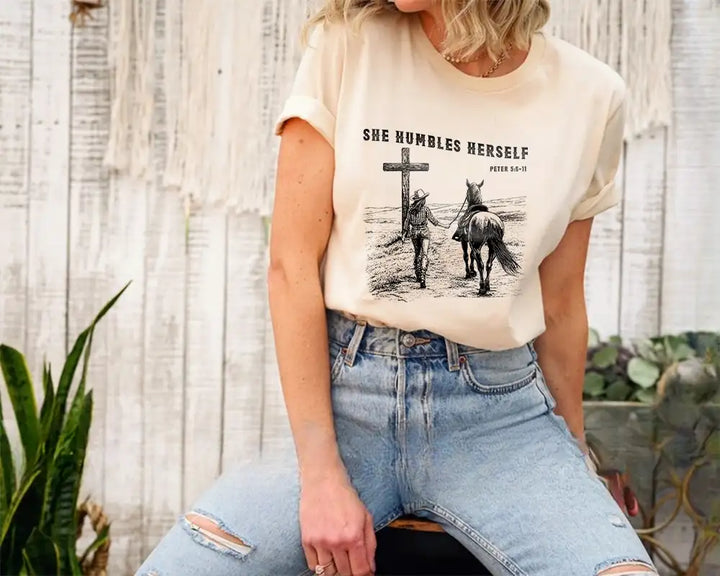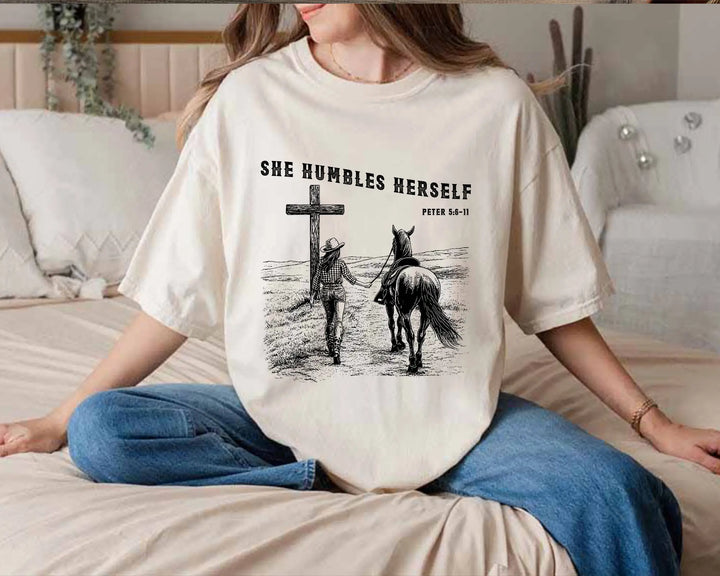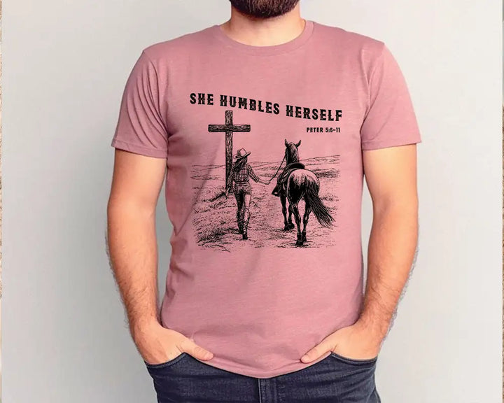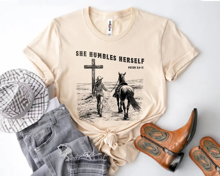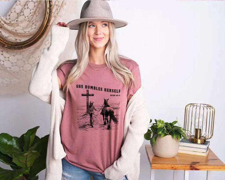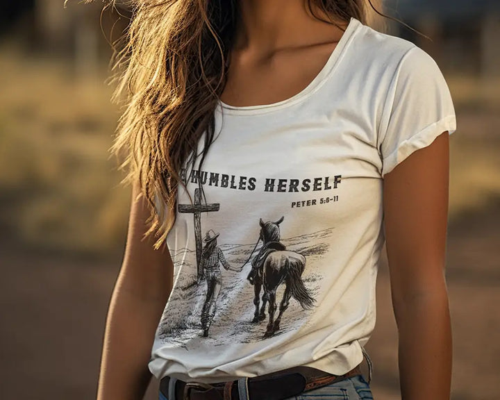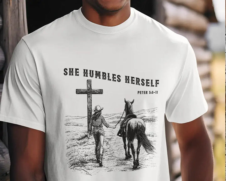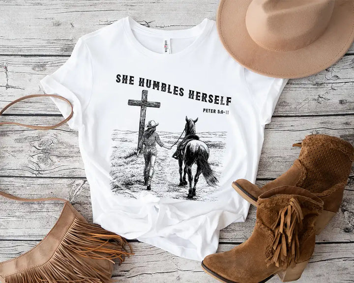 She Humbles Herself – Western Christian Faith Cowboy Tee