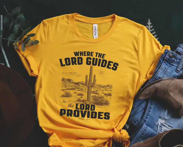 Where the Lord Guides, the Lord Provides – Western Christian Tee